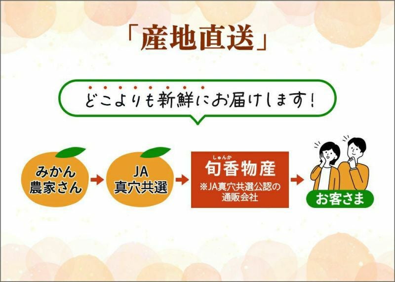 旬香オンラインショップでは、お歳暮におすすめな「真穴みかん」をご用意しています。ご自宅での美味しいお取り寄せはもちろん、お世話になった方や、お取引の法人様への贈り物として10㎏の大容量入りが人気です。配達希望日をご指定できる商品もありますので、ご希望のお日にちにお届け可能です。是非ご利用ください!